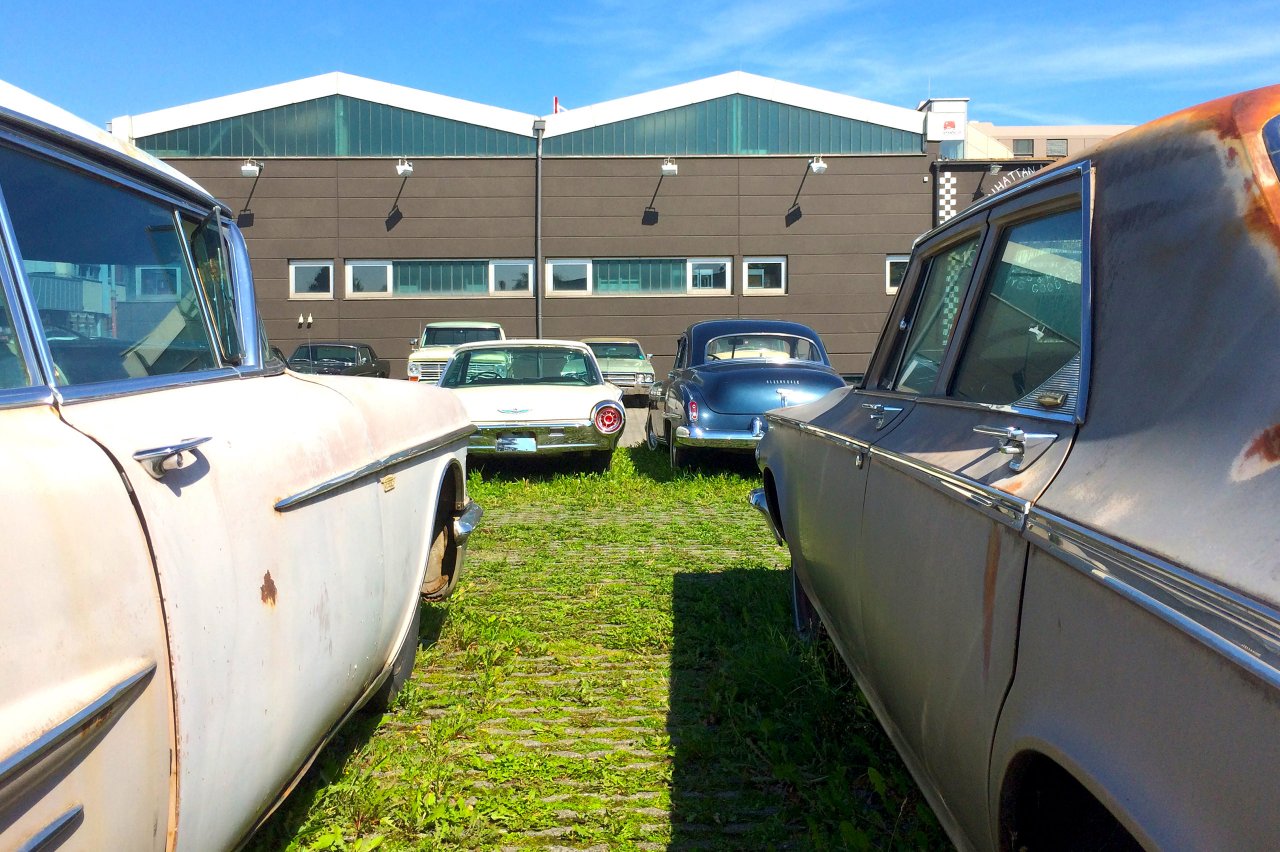 Blech gilt als unendliches Material, mit dem man mit den wildesten Formen die wildesten Fahrzeuge bauen kann. Zeitloser Chic trifft auf atemberaubendes Kitsch. Heckflosse und Cokebottle gegen Spoiler und Chrome. Alles hat seine Berechtigung, alles wird gebaut. In gigantischen Stückzahlen und ohne Rücksitz auf was auch immer…