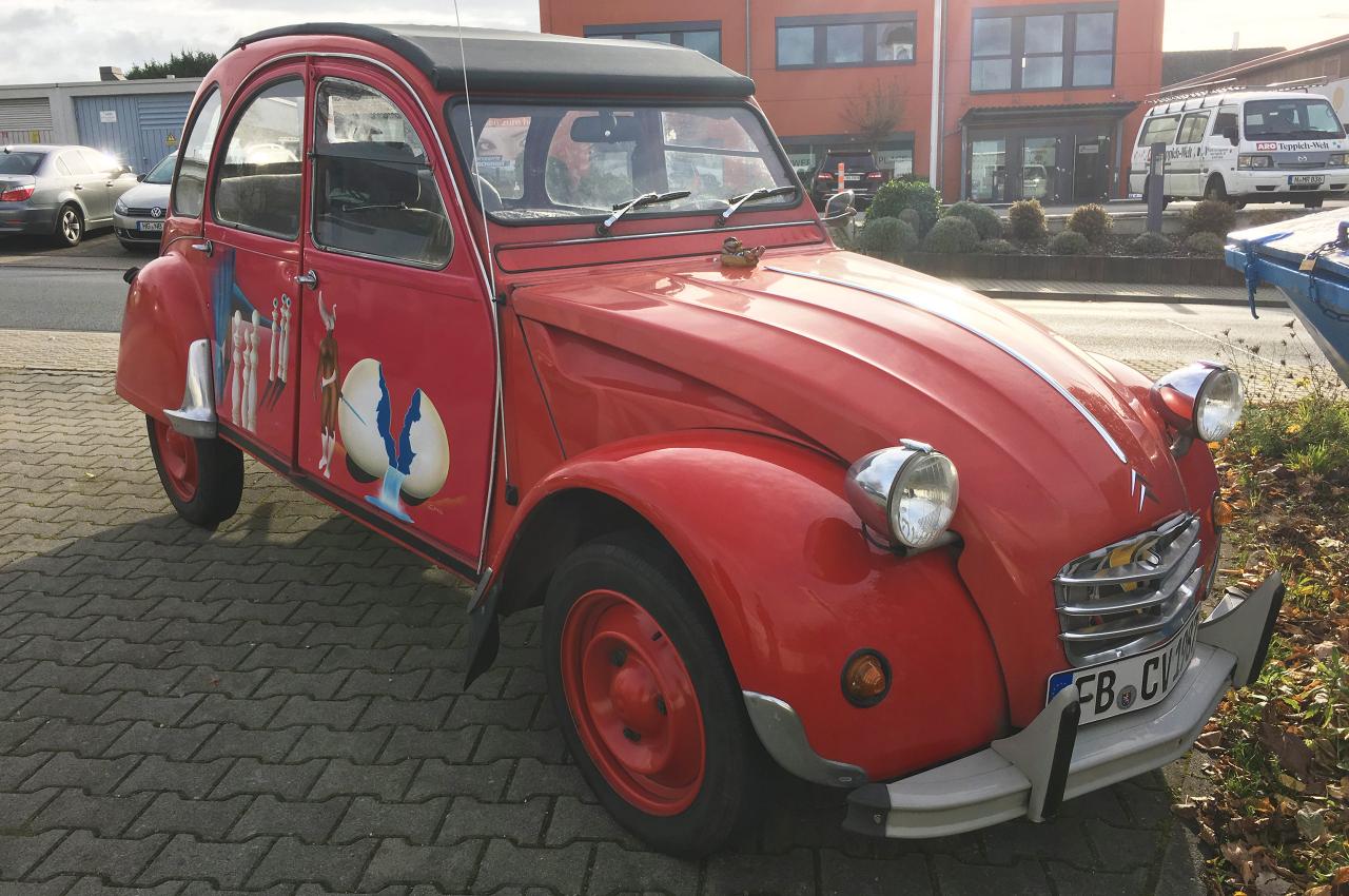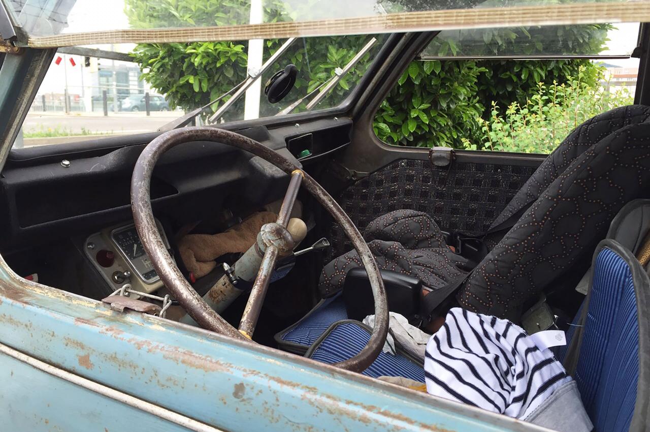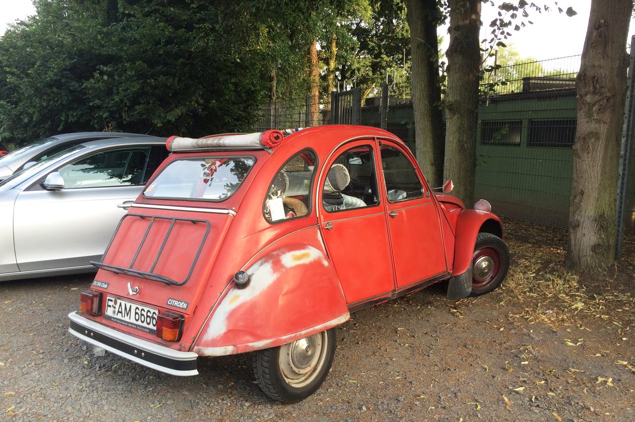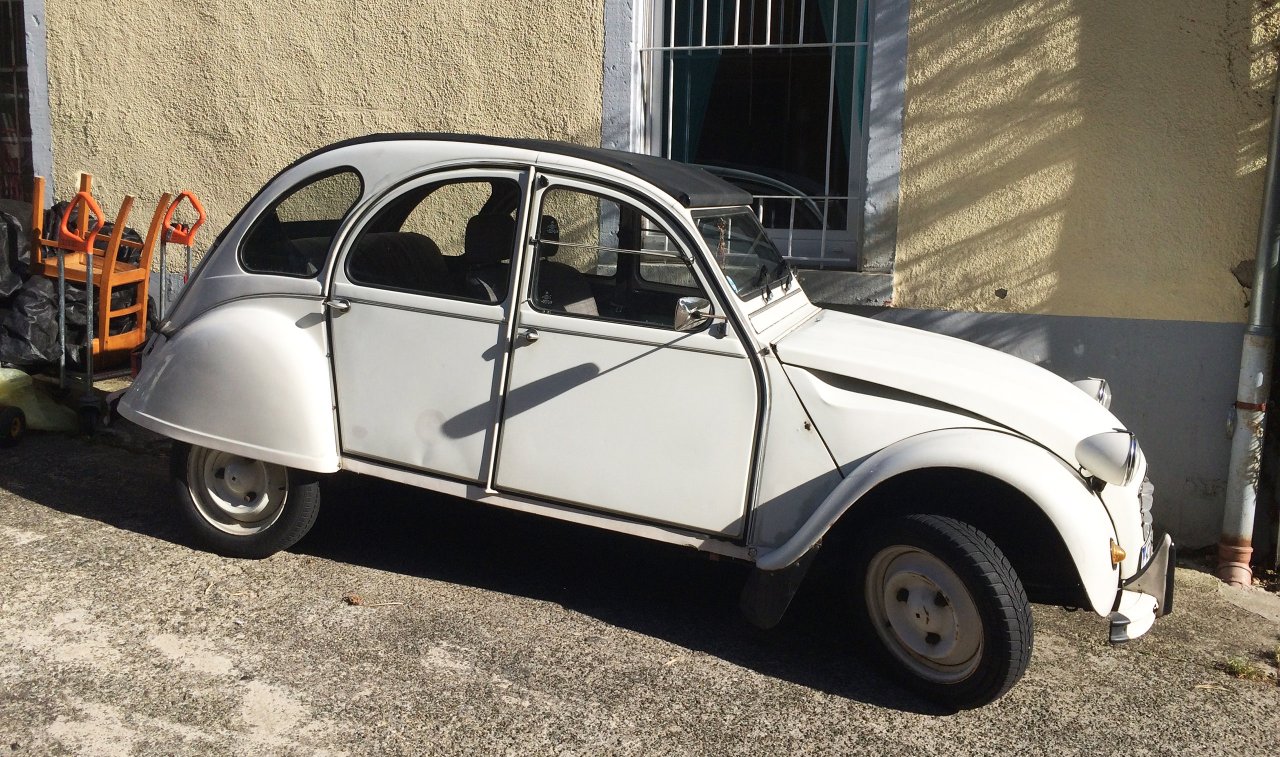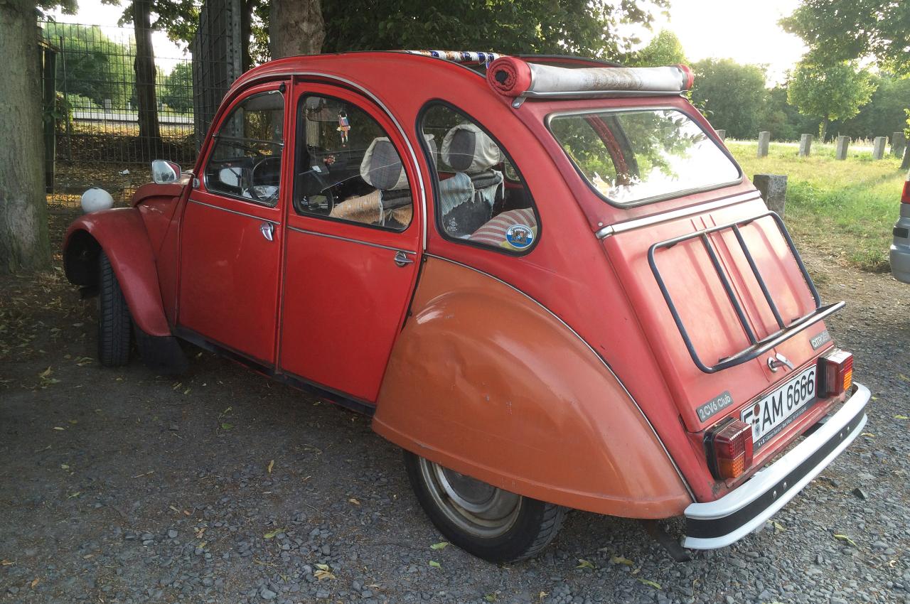 Spanngurte versuchen bemüht die kantige Heckklappe vor dem Aufspringen zu hindern, während die Trikolore traurig über der Türe baumelt. Das Schiebedach, welches augenscheinlich schon die ein oder andere Revision hinter sich gebracht hat, spendet Luft für die Passagiere, während die hilfsbedürftig lackierte Karosse auf den Asphaltschneidern zäh durch den Verkehr geschwungen wird. Bon Chance mon ami. Auch du wirst den Weg zurück in die Heimat eines Tages noch finden.