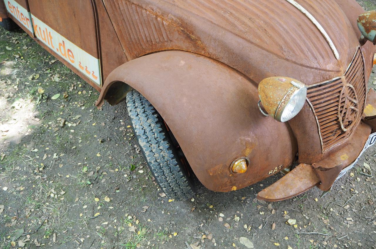 Und es gibt sie noch. Staubige Studenten, knorrige Revoluzzern, junggebliebene Rebellen. All jene, die den Wink der Zukunft nicht abbekommen haben und die seit jeher immer noch in einer Welt leben, in der ein abgerockter und durchlebter 2CV zum guten Ton gegen das System gehört. Man muss ja auch was tun gegen den Kapitalismus und gegen die Welt, die sich so schnell weiterdreht ohne einen gefragt zu haben. Ja Scheiße noch eins! Nicht mit uns! - So oder so ähnlich muss es dort zu gehen, in den Köpfen derjenige, die den Spaß daran finden, ihren Citroen derart niedergewirtschaftet am Leben zu erhalten.
