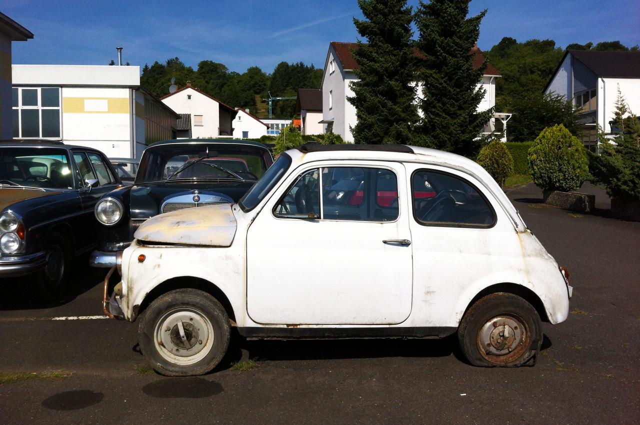 Der Knirps begeistert heute mehr denn je durch seine Einfachheit. Eine kompakte selbsttragende Karosserie. Rundherum Einzelradaufhängung und einen quirligen Zweizylinder Motor, der scharfgemacht 18 PS leistet. Und das obwohl der Anfangs erwähnte fleißige Carlo Abarth seine öligen Fingerchen noch gar nicht im Spiel hatte. Stolze 100 km/h fuhr so ein Geschoss. Unvorstellbar für heute. Aber wir reden von grob 500 Kilo, die sich auf 12“ Reifen so richtig pudelwohl fühlten. Fahrfreunde pur! Aber wehe dem, wenn die ganze Familie samt Koffern auf dem Dach, einmal in den Urlaub fahren wollte. Das muss wirklich ein schönes Bild gewesen sein. Damals, als die Gummistiefel noch aus Holz waren …