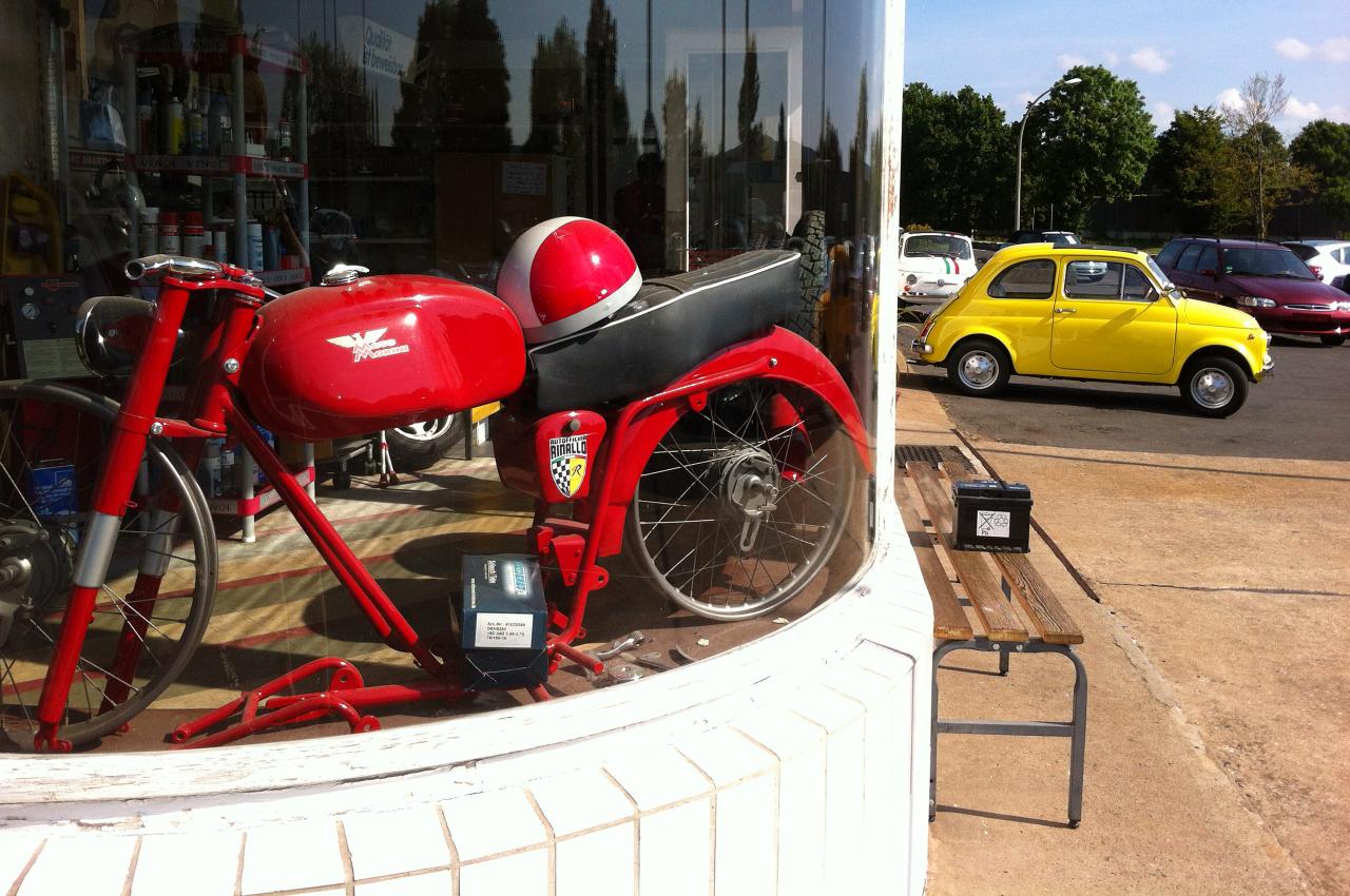 Und selbst wir waren sichtlich erstaunt, als wir eher zufällig in Obernburg die kleine Werkstatt Autofficina Rinallo entdeckten. Eine Schatzkammer voller Karossen des kleinen Fiats. Hier wird mit viel Liebe zum Detail altes Blech zu neuem Glanz geformt.