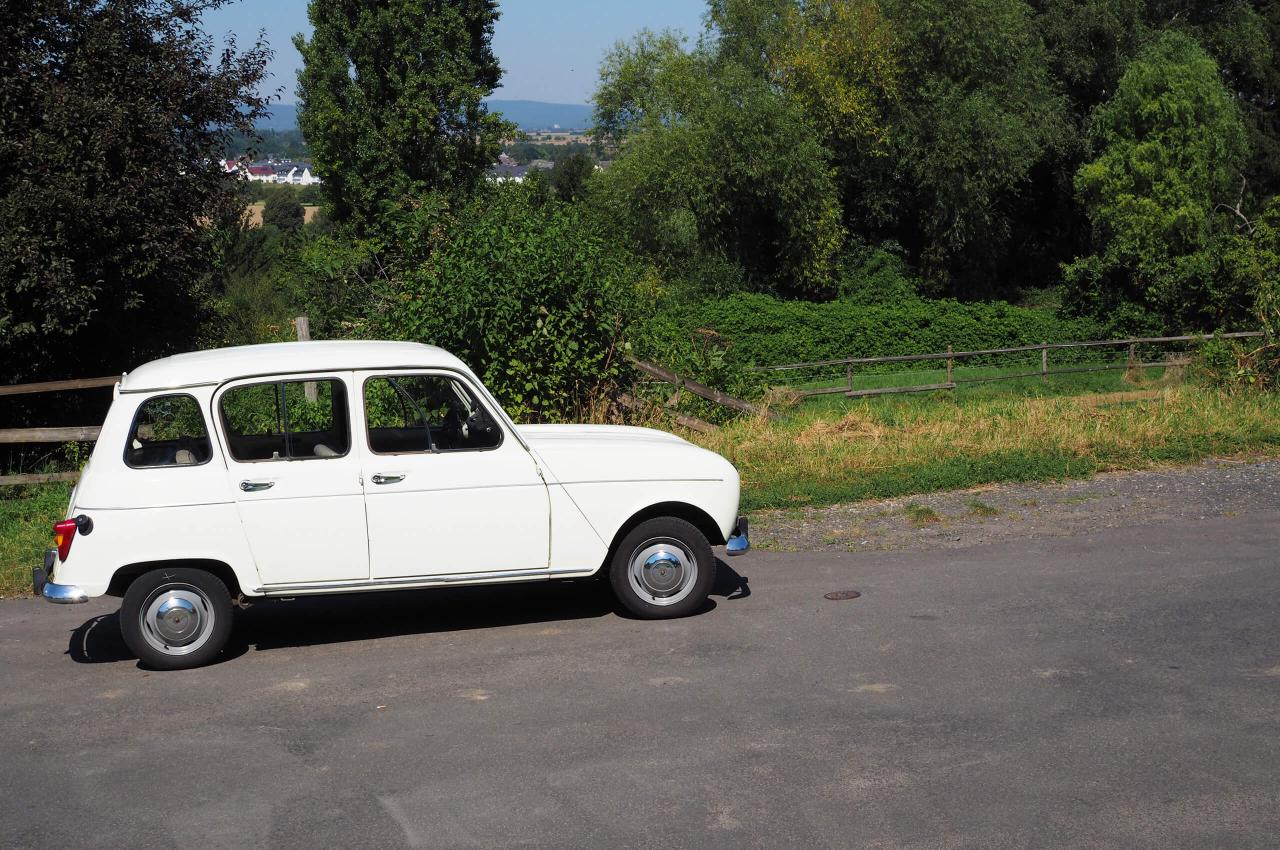 Und vielleicht macht es ja doch auch ein wenig süchtig, so dass man sich selbst einen R4 zulegt. Und sei es nur dafür, um mal kurz im Elsass einkaufen zu fahren. Mit Trommelbremsen und 80 km/h. Dafür aber mit ein paar gut duftenden Leib Käse und einigen Kisten Wein auf der Rückbank.